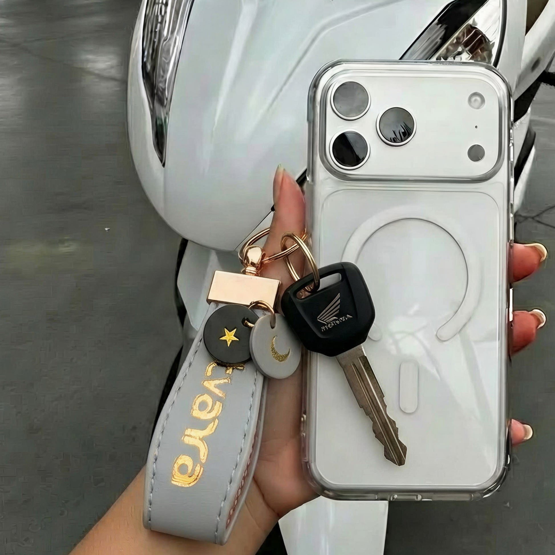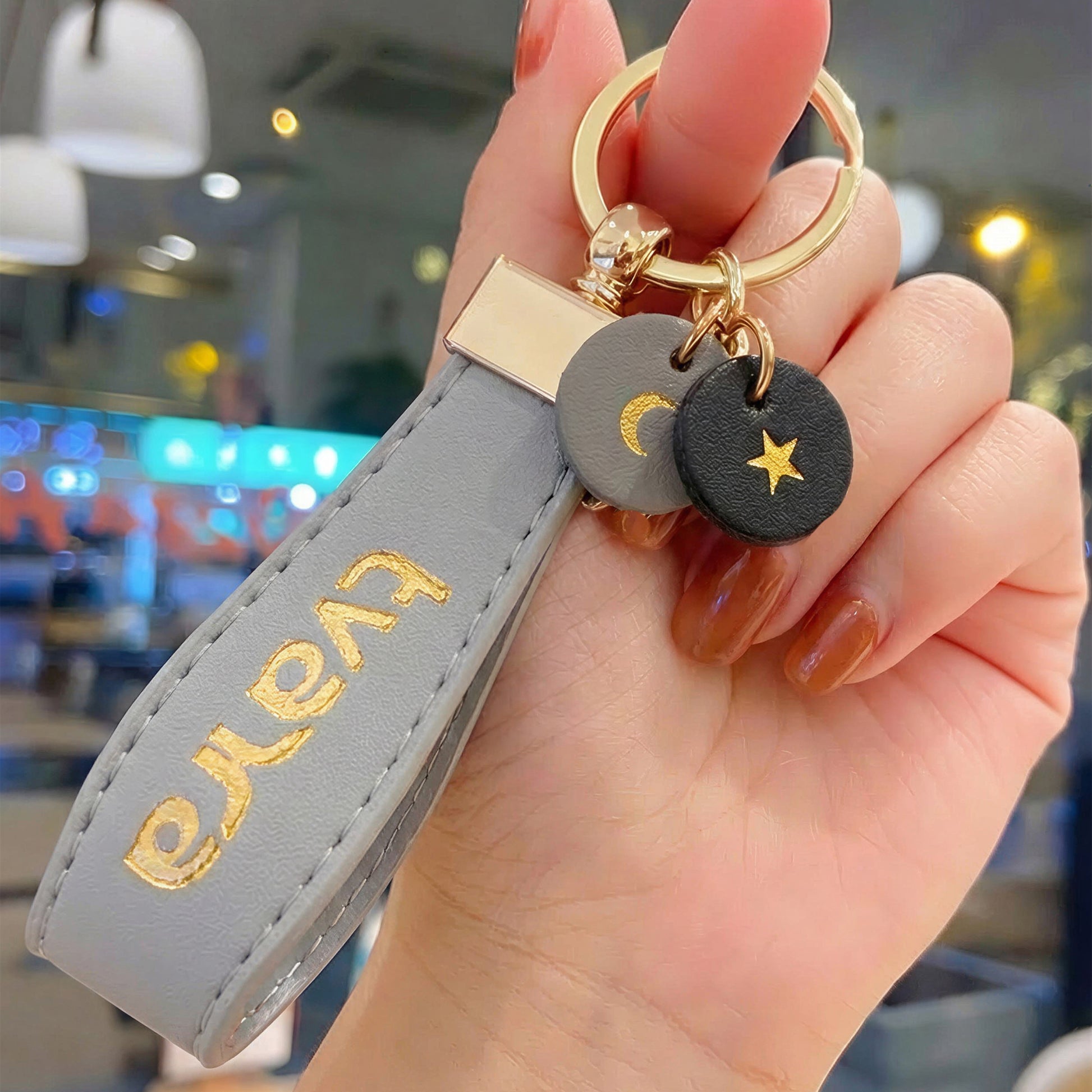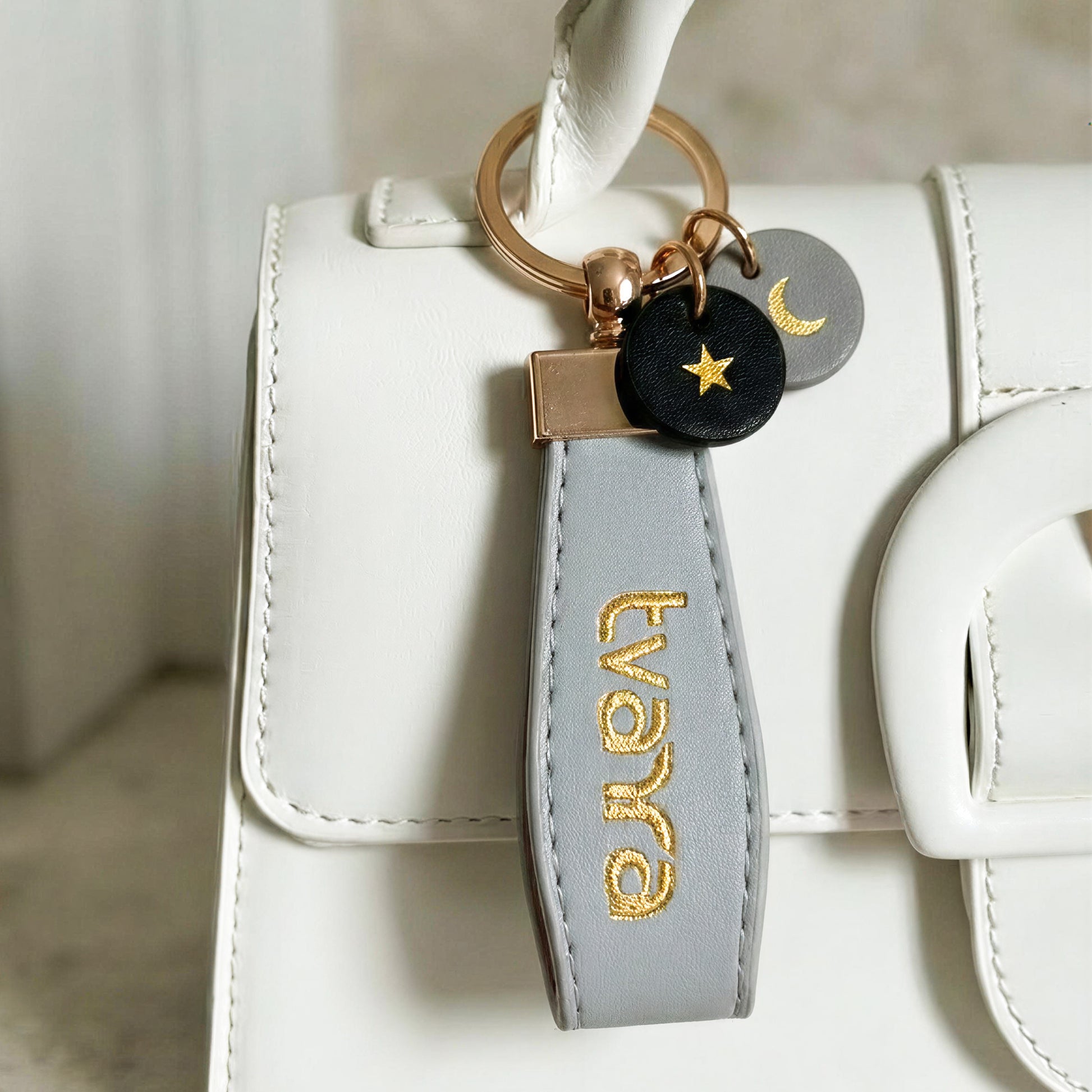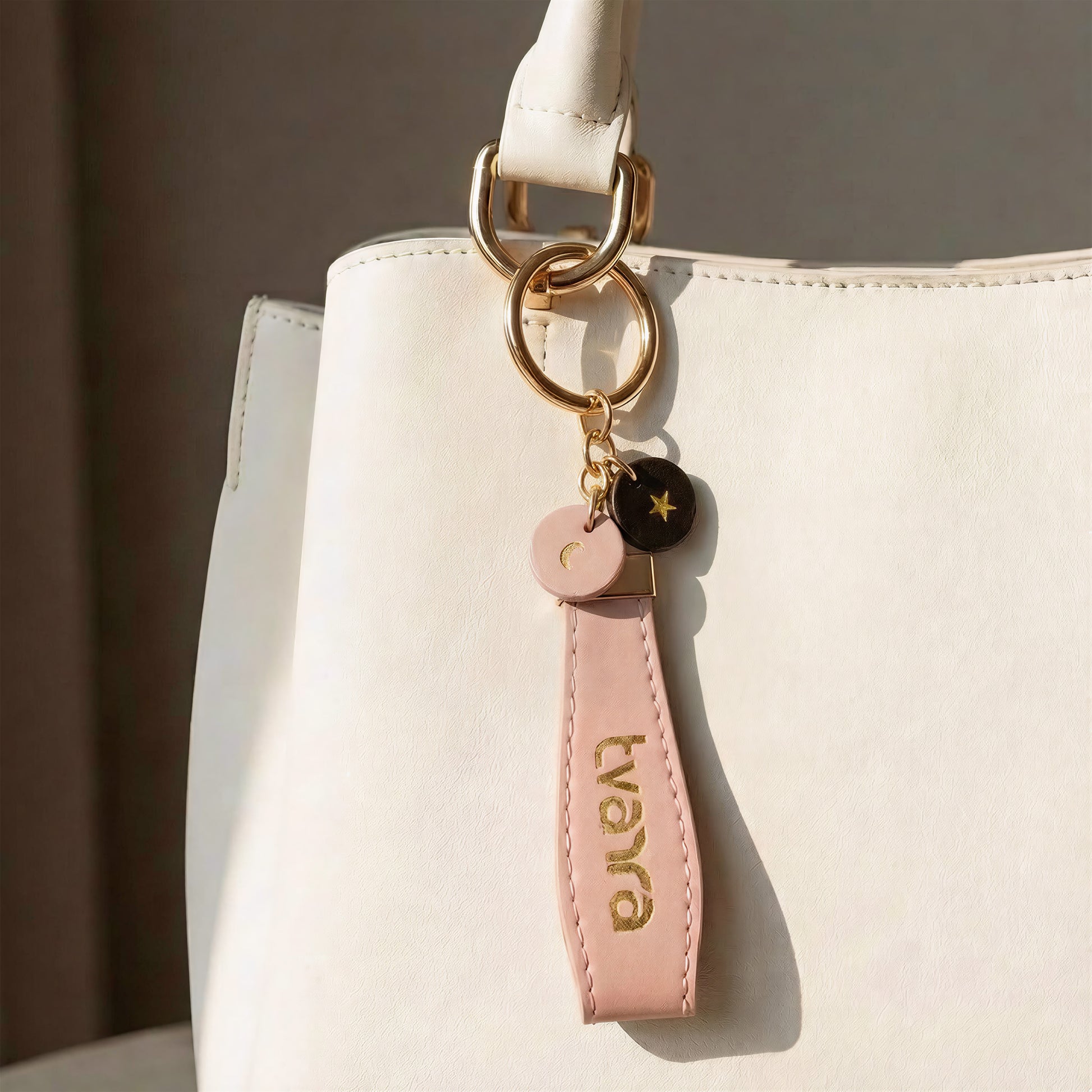 Starlight keychain available in Pink and Grey colors.