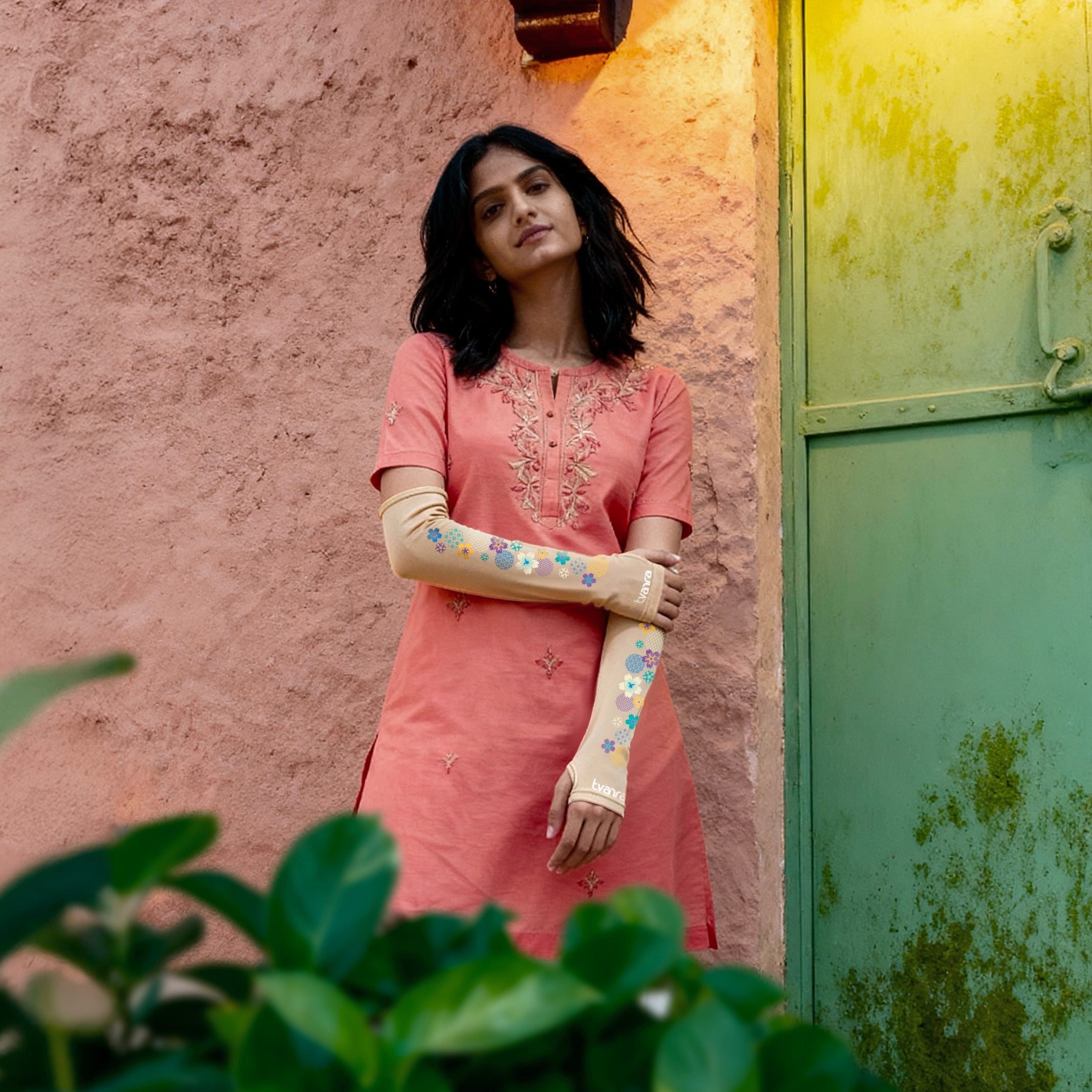 - UV Protection: Stay stylish while protecting your skin with Tvarra Women’s Anti-Tan Printed Arm Sleeves. Designed to shield your skin from harmful UV rays, these sleeves help prevent sun damage and tanning, keeping your arms safe during long hours outdoors.